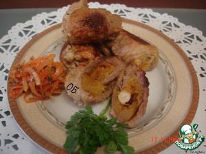 Рецепт «Свиные рулетики с курагой и орехом»: