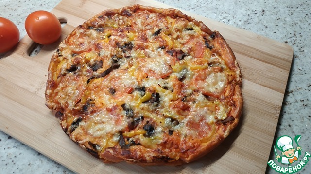 Все дело в тесте. Тесто вообще уневерсальное, подходит для ватрушки, хачапури, а уменя вот пицца.