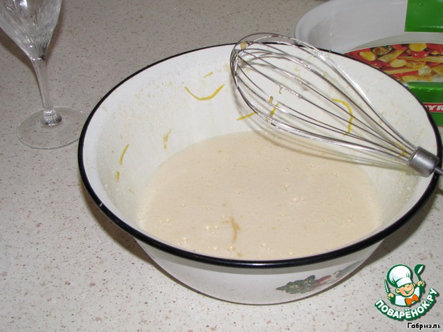 Добавить масло, лимонный сок и натертую цедру, постоянно взбивая на средних оборотах