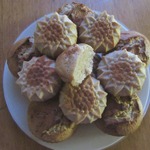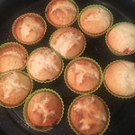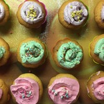 Исключил сок и цедру, накапал красителя и ароматизатора фисташка. Покупная глазурь. Толченая фисташка сверху. Тесто было гуще, сметана 15 против 10. Раздуло их сильно.