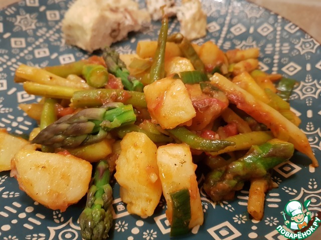Спаржу и фасоль отварить в подсоленной воде в течение 10 минут.