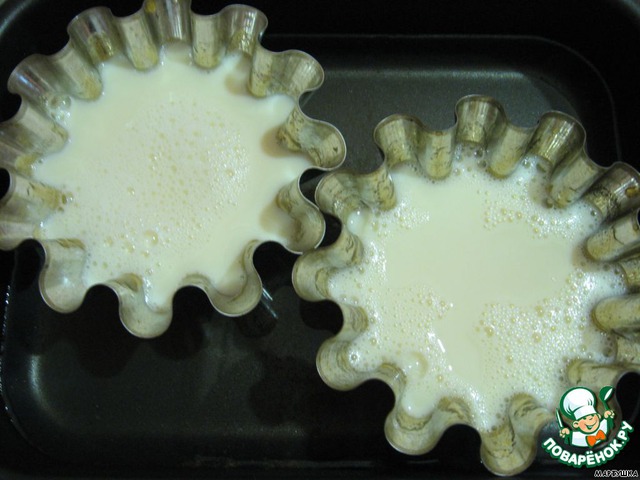 Ставим формочки в поднос, наливаем воды примерно 1 см. -