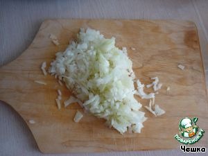 • Займемся приготовлением фарша: мелко нашинкуем лук (можно пропустить через мясорубку)