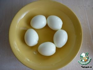 • Отвариваем яйца, очистим их и дадим остыть