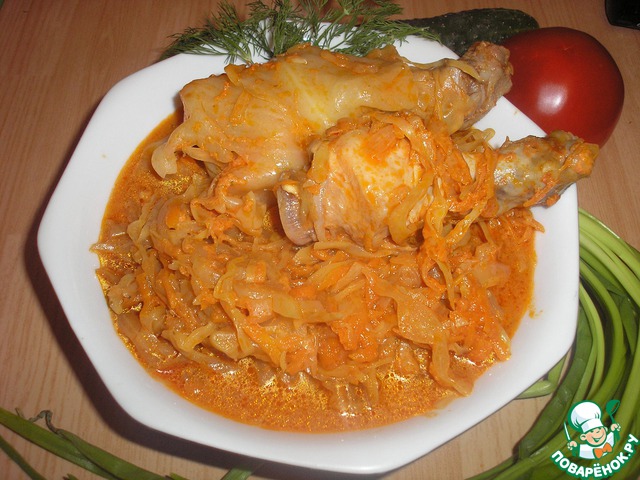 Ингредиенты для «Куриные голени с тушеной капустой»: