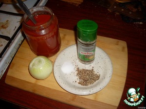 Готовим заливочную смесь : 200гр томатного соуса разводим в 500 мл воды (из чайника), соль и перец по вкусу