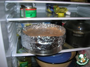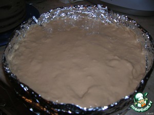 Приступаем к сборке пирожных. На разъемную форму ставим бортик дополнительный из фольги. И чередуем бисквит с кремом! Последний слой - крем.