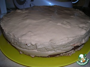 Взбиваем 700г. творога, сгущенку, 2 ст.л.какао-порошка. Отдельно взбиваем 150г.сливок с закрепителем. Я сливки взбивала "из пакета". Смешиваем с творожной массой.