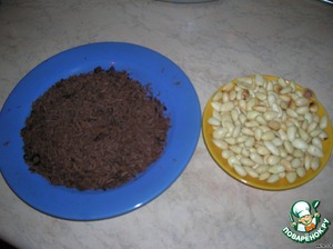Овощечисткой делаем шоколадную стружку, рубим миндаль.