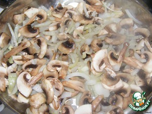 Обжарить грибы и лук на растительном масле.
