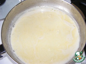 СОУС. Развести 1 ч.л. крахмала в стакане сливок, вылить на разогретую сковороду, довести до кипения, огонь убавить и варить до загустения соуса.