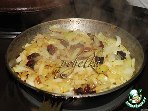 • Лук слегка обжарить в сливочном масле, ещё я добавила немного сушеных помидоров.