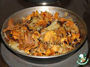 • Добавить лисички, посолить, поперчить и тушить на медленном огне до готовности грибов.