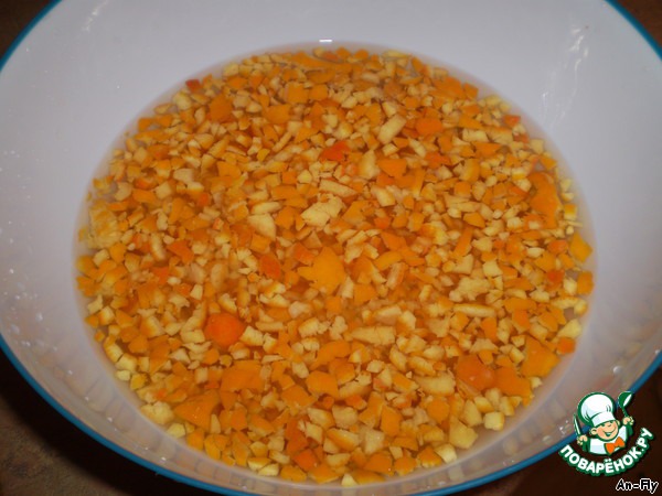 Молотую кожуру залить холодной водой и вымачивать 2-е суток. Воду менять 2-а раза в день.