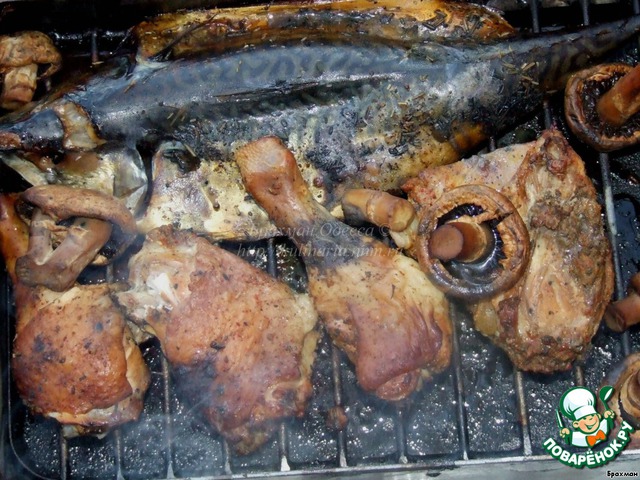 И рыбка, и курочка очень аппетитные. А курочка рыбкой не будет пахнуть, если их так вместе коптить? И я думала, что рыбке поменьше времени надо будет, чем курочке, как Вы считаете?