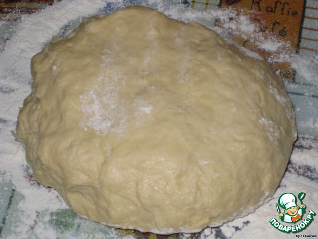 Из указанных ингредиентов замесите тесто и раскатайте его в два пласта.