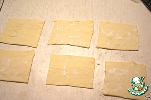 Раскатываем тонко наше тесто и вырезаем квадраты примерно 8 на 8 см.