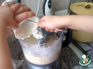 Отдельно взбить яйца с сахаром (начиная с этого момента "работал" мой сынуля).