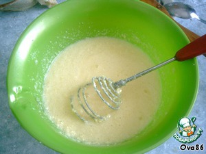 Отдельно смешать муку и разрыхлитель. Всыпать в яичную смесь и перемешать до однородности.