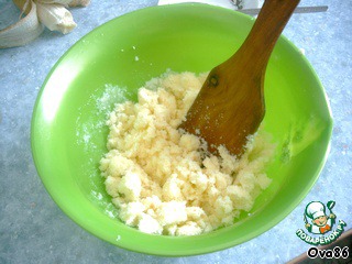 Ребром ложки рубить эту массу, пока она не станет однородной крошкой.