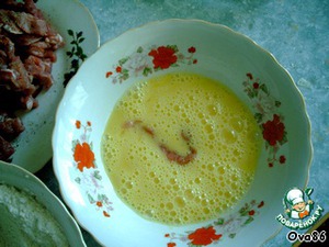 Обмакнуть кусочки мяса сначала в яйцо,