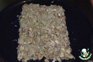 На блюдо, первым слоем, выкладываем остывшие грибы.