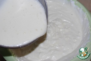 Молоко, которое с желатином, нагреваем (всё опять-же, ПО-ИНСТРУКЦИИ). Соединяем с массой.