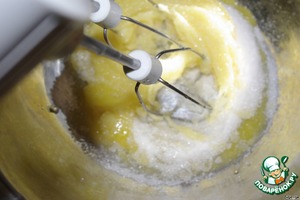 Яйца делим на желтки и белки. Желтки растираем добела, с 0,5 стакана сахара.