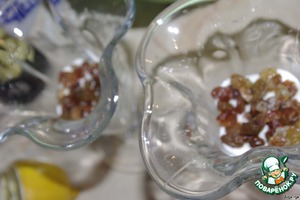 Изюм и чернослив запариваем. Выкладываем изюм.