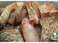 Затем хорошо промыть, дать стечь лишней воде и залить уксусом так, чтобы рыба полностью была им покрыта. Опять поставить под пресс на 3 часа. |