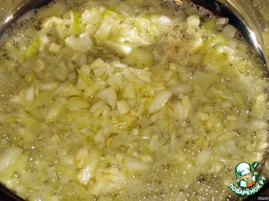 Пассируем лук и чеснок на растительном масле 2-3 минуты. Сковороду брать, желательно, с толстым дном.