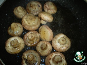 Обжарить на сильном огне шампиньоны с двух сторон~5-7минут,посолите и поперчите.