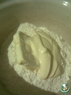 Муку просеять горкой в миску. В углубление положить холодное масло.
