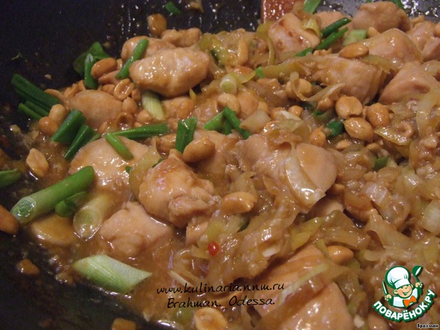 -В заключение добавить арахис и, по желанию, зеленый лук.