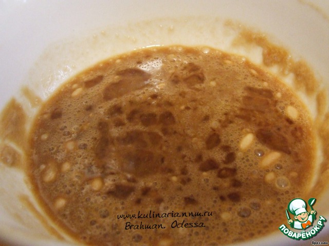 -Теперь мясо нужно замариновать. Для маринада смешиваем все ингредиенты и даем настояться. Минимум полчаса, максимум- у меня было 2 часа. -