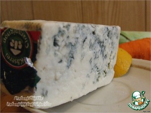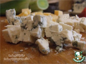 Оговорюсь сразу: Сыр. Тут возможны варианты. Дор-Блю, Рокфор, можно Бри. Предвидя высказывания типа: "зажрались вы, дорогим сыром раскидываться", отвечаю, что блюдо это в принципе гостевое, праздничное, или "побаловать себя, родимого". Брать его можно совсем немного. У меня на это блюдо ушло немногим больше 100 г.