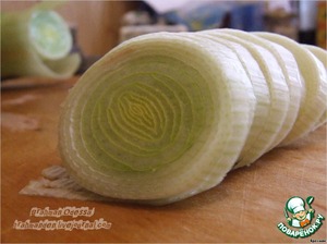 Моем порей, нарезаем его на тонкие колечки, не слишком тонкие, дабы не развалились. -