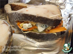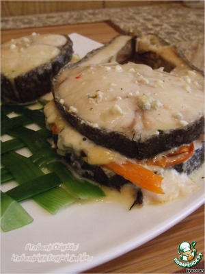 Масляная рыба под сырным соусом на луковой циновке