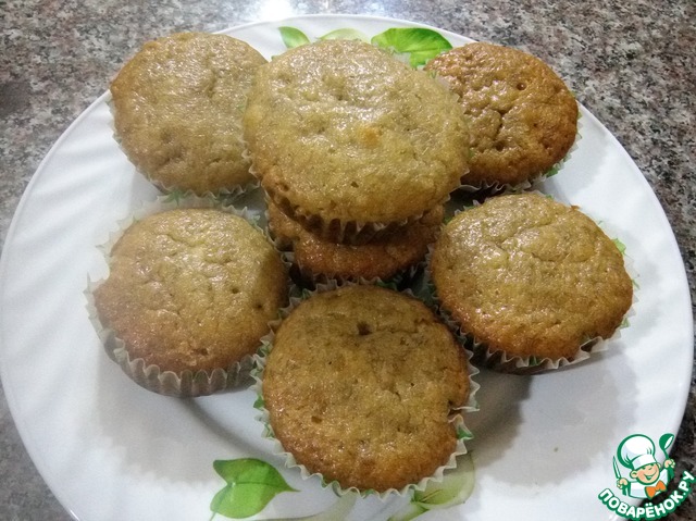 Добавьте эту смесь в муку. Быстро замесите (смесь будет комковатой). Получается 12 маффинов.