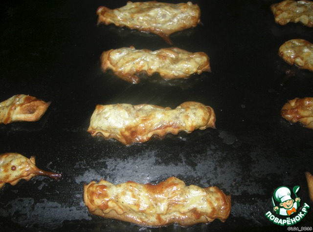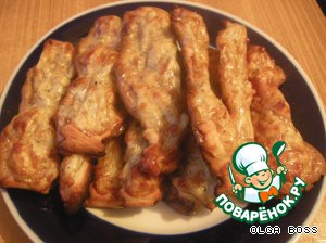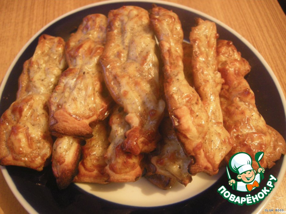От пирожка с черной смородиной http://www.povarenok .ru/recipes/show/389 80/ остался чуток теста, и сотворили мы вот такие сырные палочки.