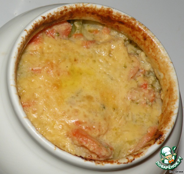 • В огнеупорную тару слоями укладываем овощи - тертый сыр - овощи - сыр - овощи - сыр, прикрываем крышечкой, оставляя зазор, и на 25 минут в духовку ;-)