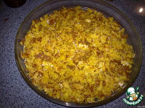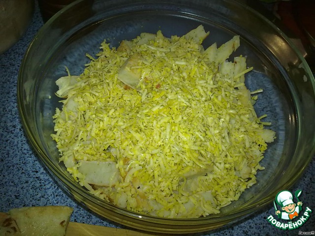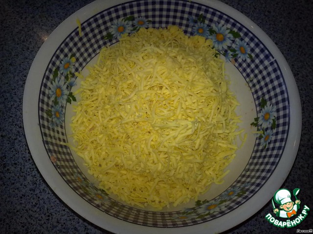 • Смазываем майонезом и сверху посыпаем печеным сыром