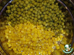сцеживаем жидкость с горошка, кукурузы.