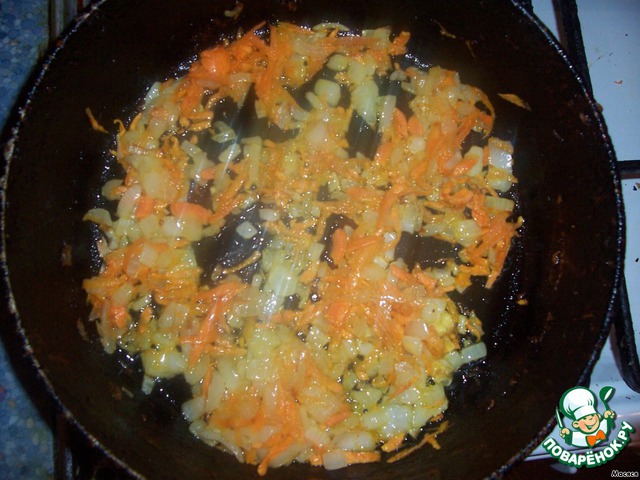 • 1 шаг - Приготовление паштета. Обжариваем лук и морковь