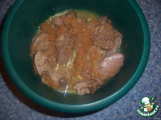• 5 шаг - Снова обжариваем лук и морковь, уже без печени.