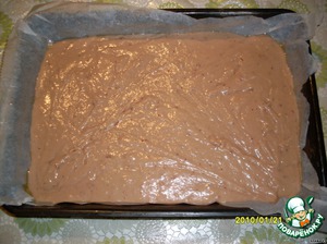 Противень выстелить смазанной маслом бумагой для выпечки и вылить тесто.