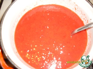 Для промазки я перетертую клубнику проварила с 1 ст. ложкой крахмала.