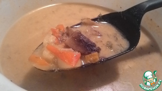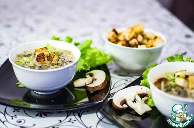 Суп - просто объедение!!! Автор рецепта - шеф-повар Тами Сиркис. Наткнулась на рецепт совершенно случайно, а т. к. к грибам неровно дышу, сразу и сварила. Результат превзошел все ожидания!