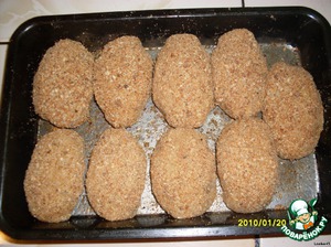 Дальше я поступила так: одну часть зраз я решила запечь. Зразы обваляла в молотых сухарях, сложила на противень,