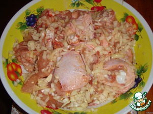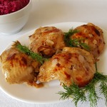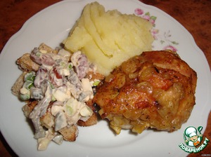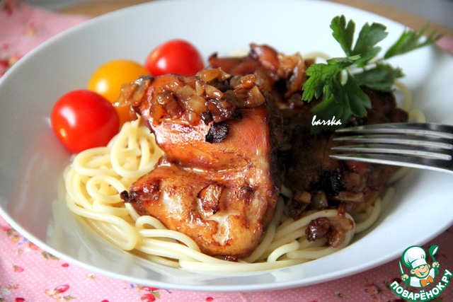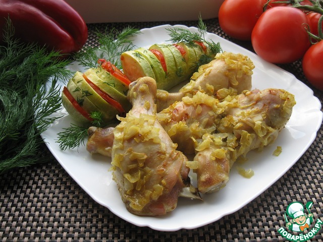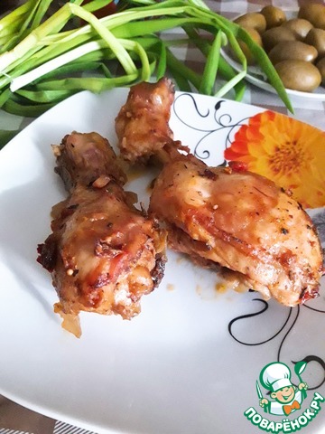 [+5]Потрясающе вкусная, ароматная курочка с великолепным луковым соусом! Мариновала 4 часа, запекала без обжаривания!